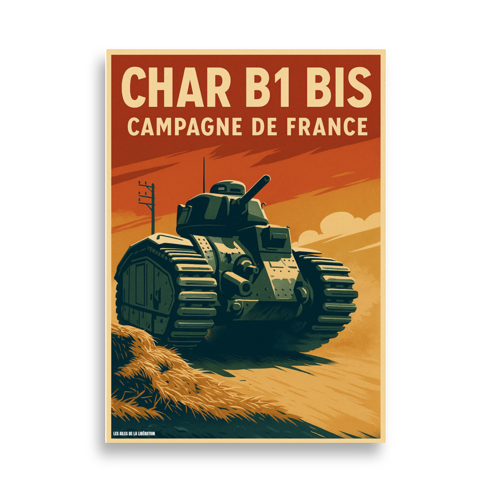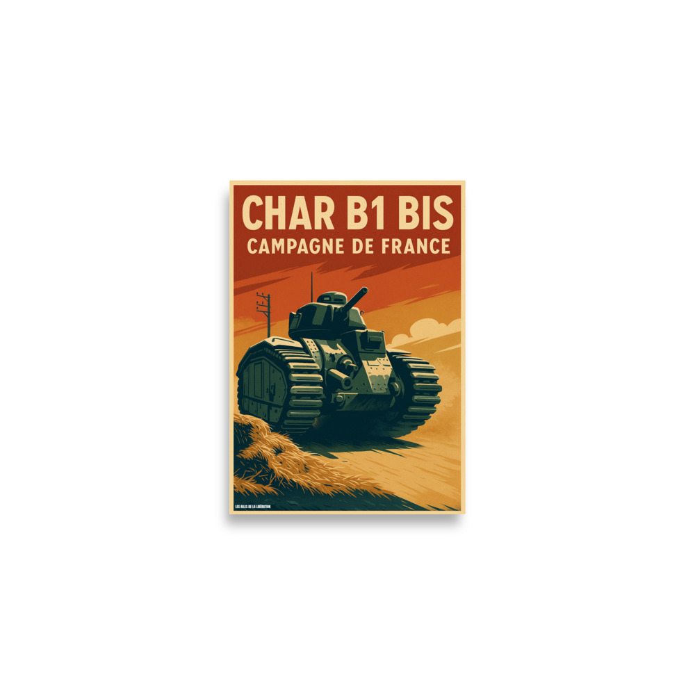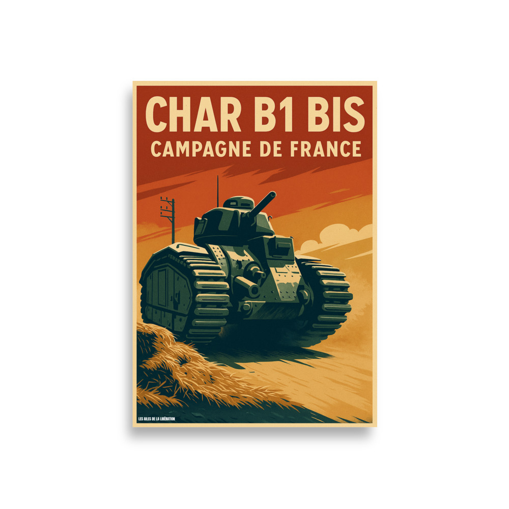 Poster du Char B1 Bis, blindé emblématique de 1940. Une affiche historique de qualité pour passionnés d’histoire militaire et collectionneurs.